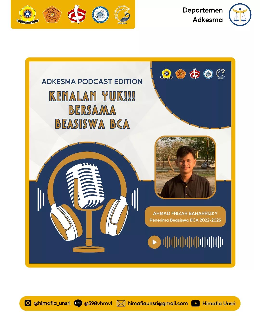 Kali ini departemen Adkesma datang dengan membawakan podcast yang sudah dinanti-nanti oleh para pejuang beasiswa nihh. Yaitu *"Kenalan yuk!!! Bersama Beasiswa BCA"*