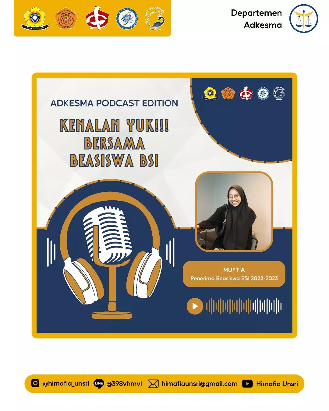 Kali ini departemen Adkesma datang dengan membawakan podcast yang sudah dinanti-nanti oleh para pejuang beasiswa nihh. Yaitu *"Kenalan yuk!!! Bersama Beasiswa BSI"*