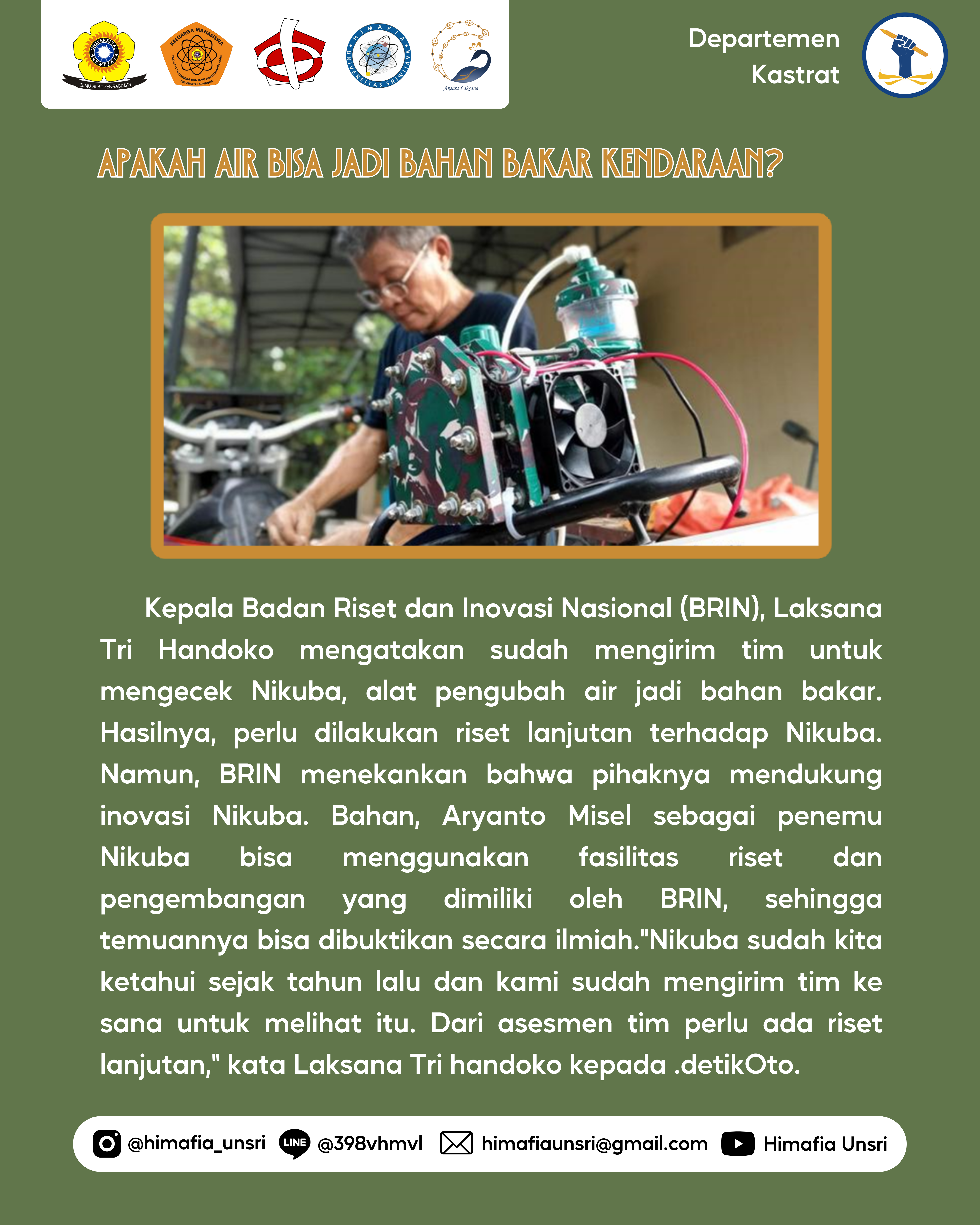 Lalu bagiamana cara kerja dan apa air bisa menjadi bahah bakar? nah disini kami akan membahas secara singkat mengenai Nikuba buatan WNI yuk kepoin dan bisa dibaca!!