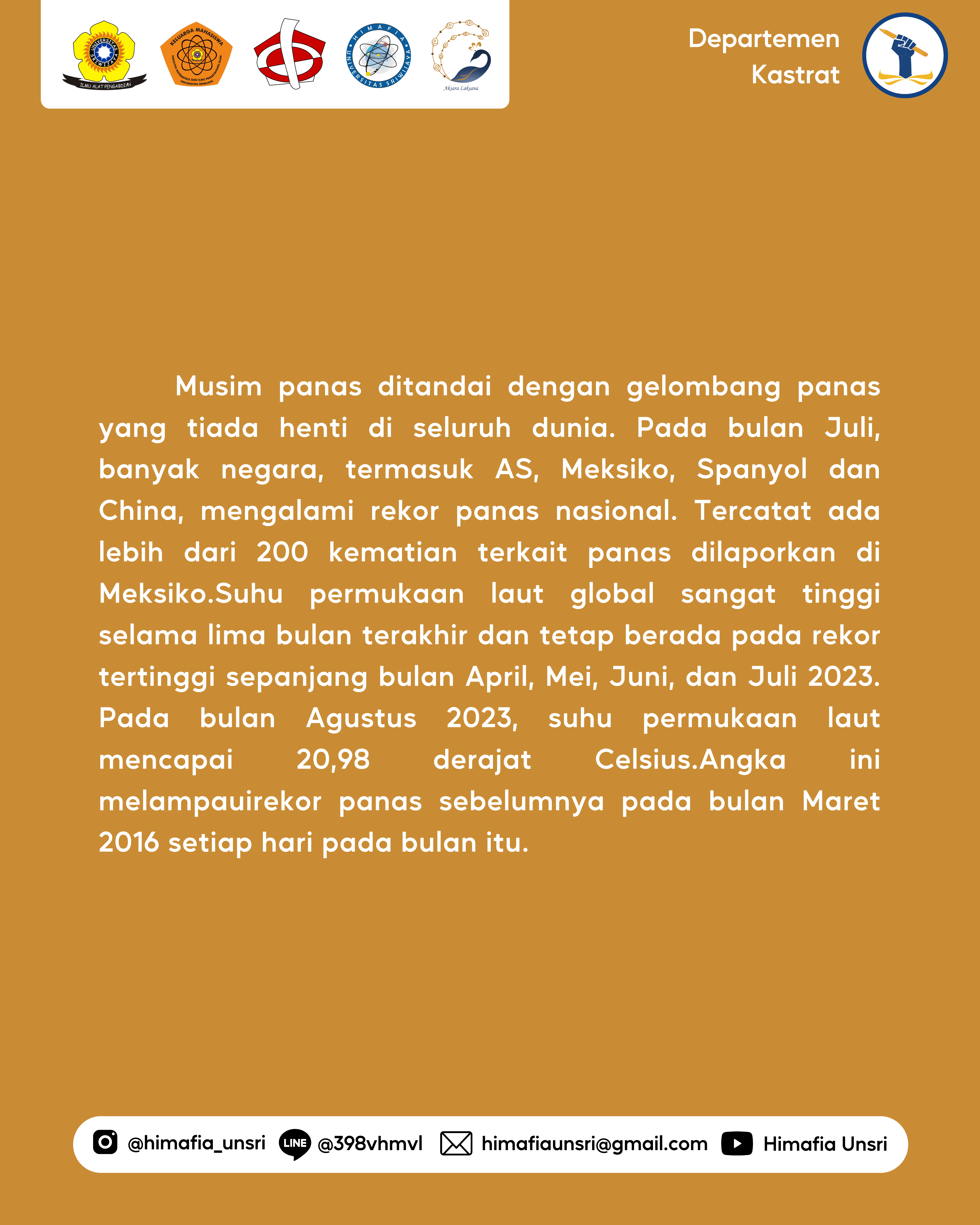 Departemen Kajian Strategis BPH HIMAFIA UNSRI 2023 #Nasa pastikanseluruhdunia2023dilandapanas#KastratBagi-