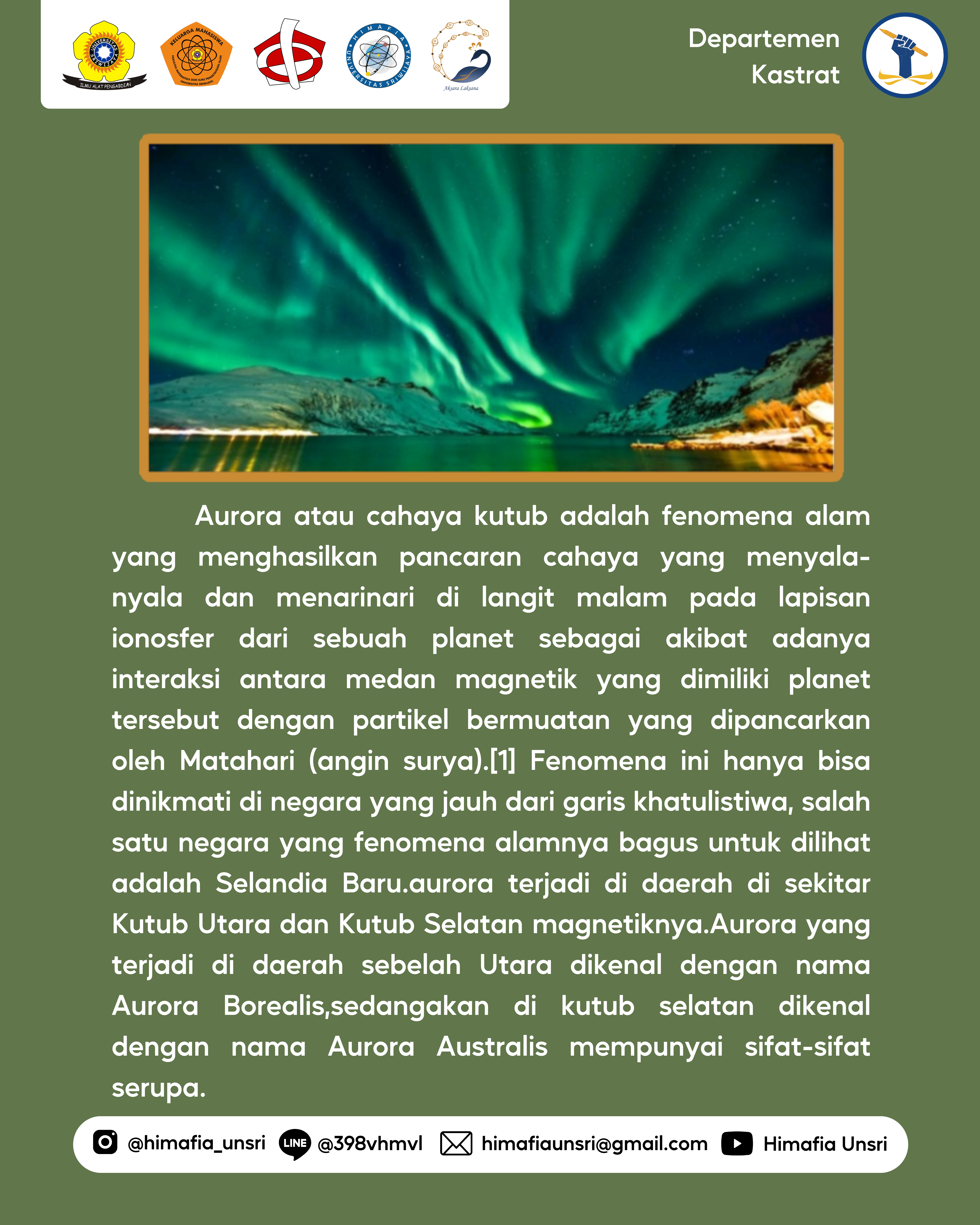 #FenomenaAurora#KastratBagi-BagiIlmu#MakeKastratGreat#KabinetAksaraLaksana #HimafiaUnsri #SatukanAsaUntukFisikaBerkarya