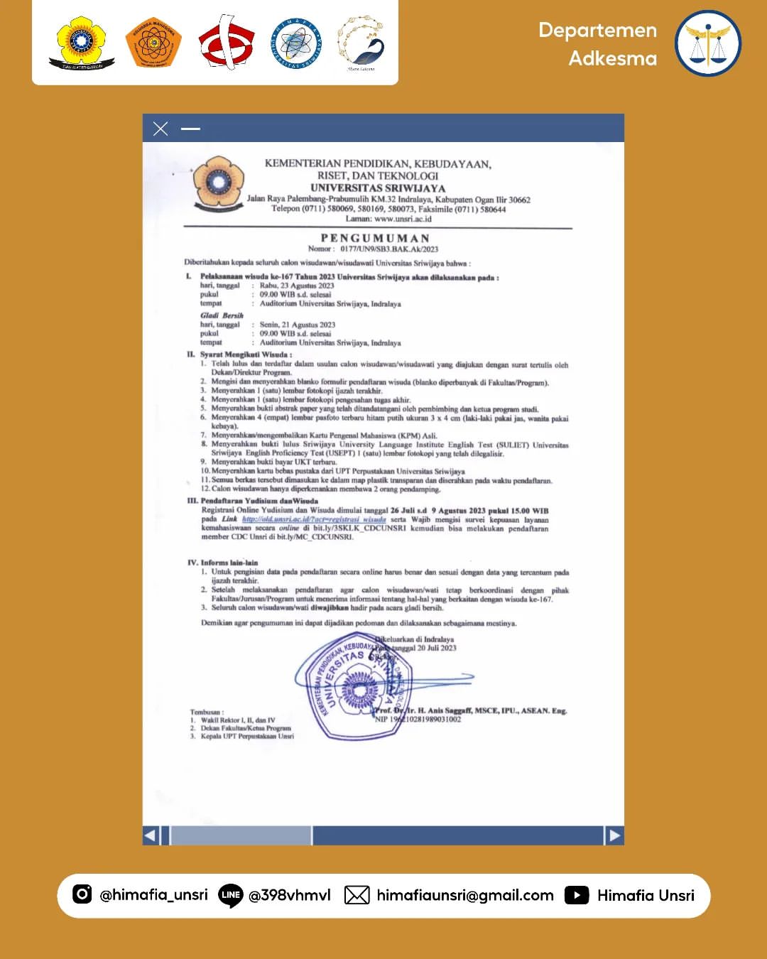 ๐ข[Sekilas Info Adkesma #32 : Pengumuman Wisuda Ke-167]๐ข