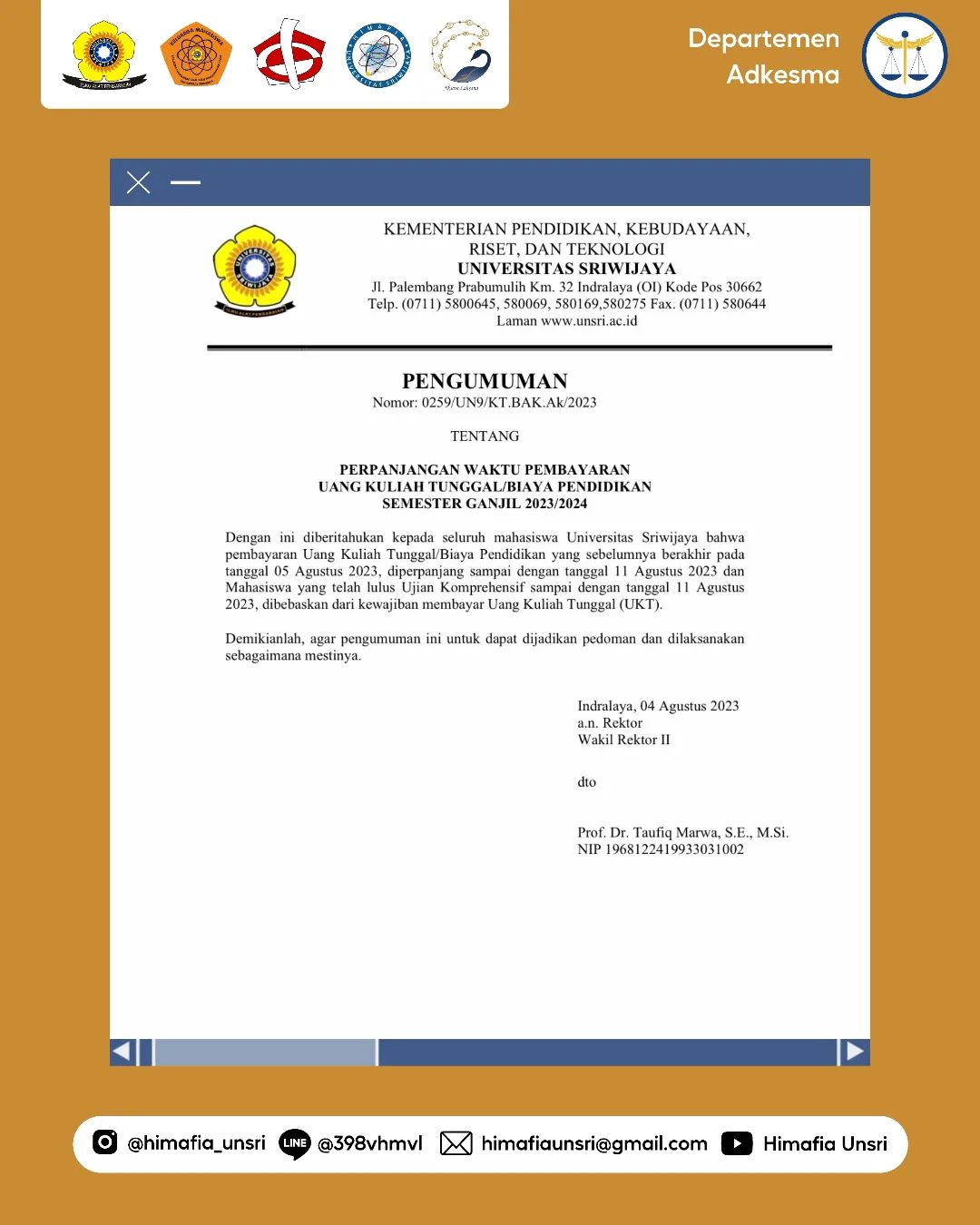 📢[Sekilas Info Adkesma #33 : Pengumuman Perpanjangan Masa Pembayaran UKT Semester Ganjil 2023/2024]📢