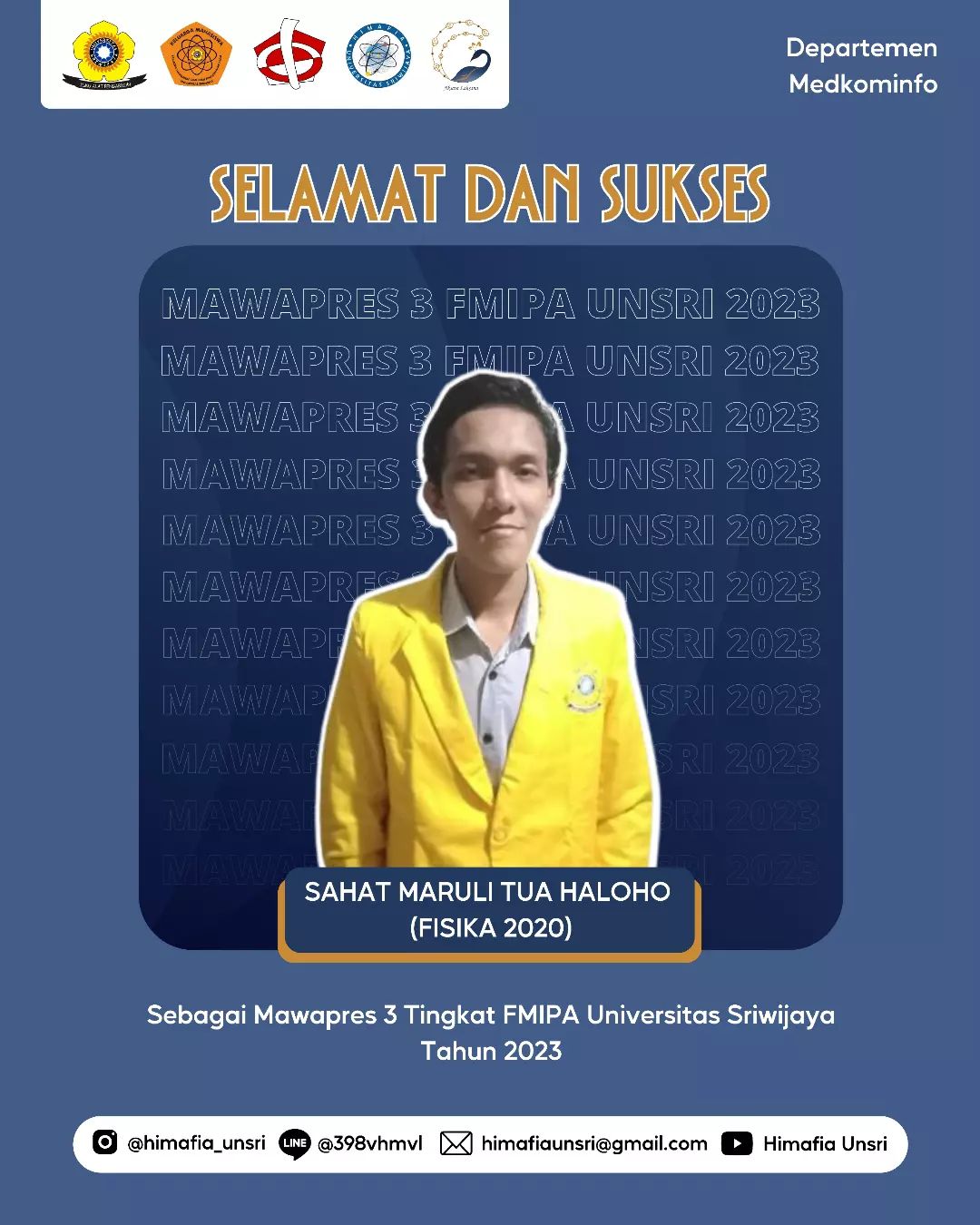 Sebagai Mawapres 3 Tingkat FMIPA Universitas Sriwijaya Tahun 2023